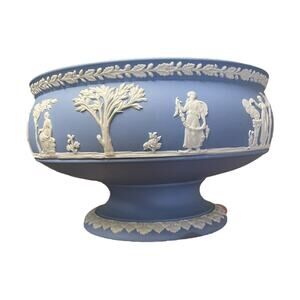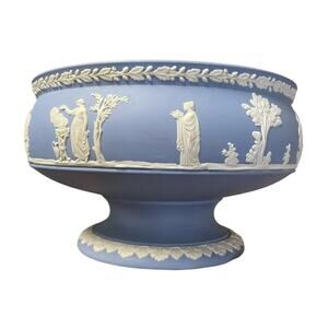 Wedgwood Footed Imperial Bowl Cream on Lavender (Pale Blue) Jasperware 8" Round