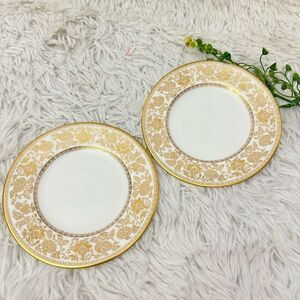 Wedgwood Gold Damask 2 Piece Bread & Butter Plates Bone China Elegant