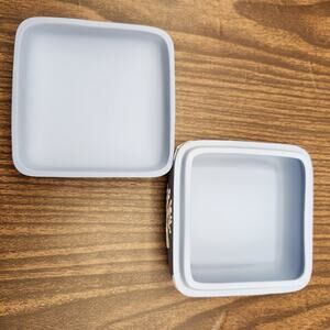 • Approx. 4" × 4" × 2" tall with lid