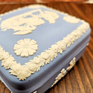 Wedgwood Jasperware Square Trinket Box – Ulysses & Chariot of Victory - Blue/Whi