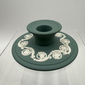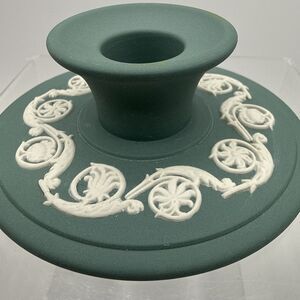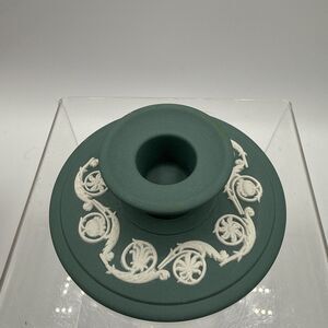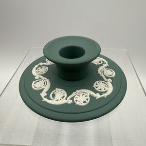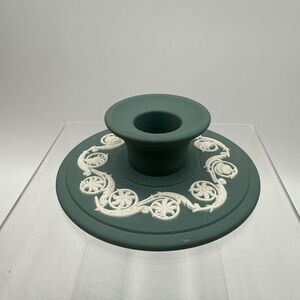 Wedgwood Jasperware Teal Single Candle Holder Circles Flowers England 1985