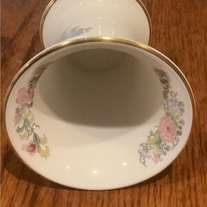 Beautiful Wedgwood Kutani Crane Bone China 3 1/2” footed vase rimmed in gold. Features a Kutani crane and flowers. Pre-owned, good condition.