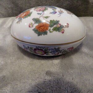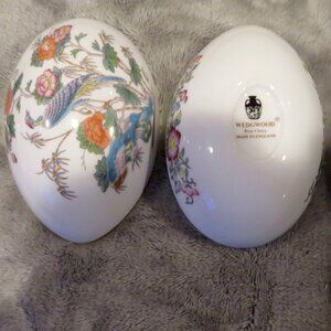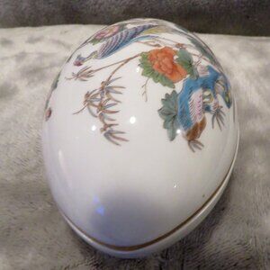 Wedgwood Kutani Crane Small Egg Shape Lidded China Trinket Dish Made in England