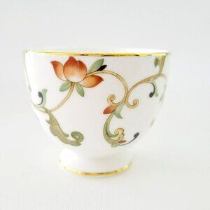 Wedgwood Oberon Footed Teacup & Saucer Beige Green & Rust Floral Paisley England