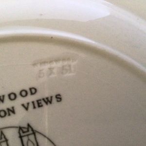 10” diameter. Made in England. Marked on back Wedgwood of Etruria & Barlaston. Pressed into the plate is Wedgwood 5 x 51.