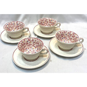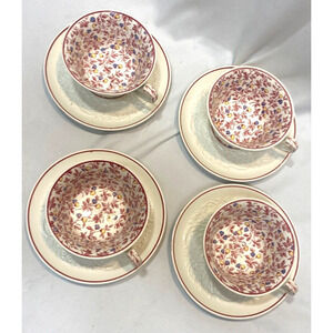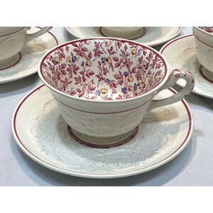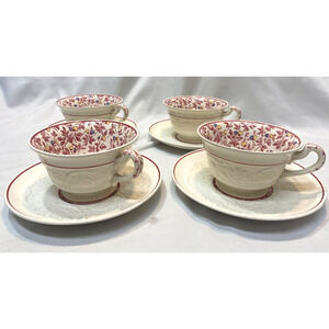 Wedgwood Patrician Crimson Pompadour Cups & Saucers England 4