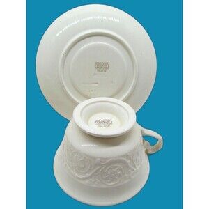 Wedgwood Patrician Ivory Cup And Saucer Set Of 2 Cups 4 Saucers 1 Dessert Plate You Will Be Getting 2 Cups, 4 Saucers And 1 Dessert/Bread Plate In Good Condition. No Chips, Cracks, And I Saw No Crazing. All Items Will Be Wrapped Carefully And Insured. Comes From A Smoke Free Environment.