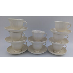 Wedgwood Queens Plain Tea Cup and Saucer Set of 8 Cream Color England QueensWare