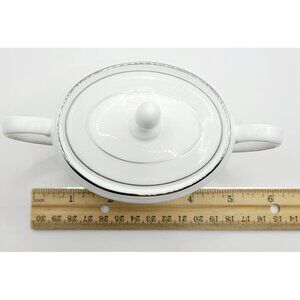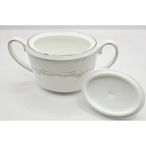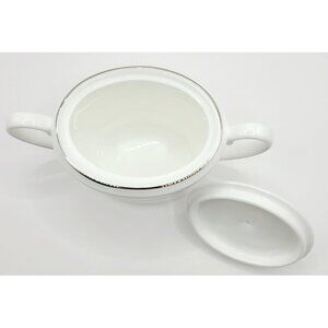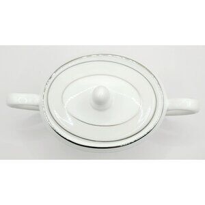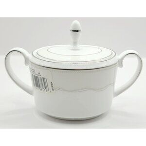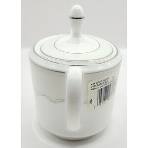 This porcelain sugar bowl features a timeless design with delicate silver accents and a secure lid. It is new with tags, never used, no box. It was factory sealed, but I unwrapped it to inspect and take photos. Please visit my shop for more pieces from this collection, and I would be happy to bundle shipping. Thanks for shopping