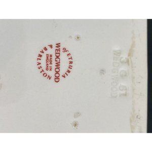 The backstamp is WEDGWOOD of Etruria & Barlaston Made In England (no ® mark, which came into use in 1974). Also on the base is the impressed mark WEDGWOOD and the impressed date mark 3 G 61 (March 1961, the G being the artist's mark).