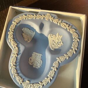 Wedgwood Blue Jasper Vintage Clover Shaped Trinket Dish in Original Box