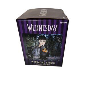 This intriguing Halloween decoration captures the mysterious essence of the iconic Wednesday Addams from The Addams Family. Standing an impressive 5 feet tall, this airblown inflatable features a lifelike depiction of Wednesday, complete with her signature braids and solemn expression. Perfect for both indoor and outdoor use, this inflatable illuminates to enhance its eerie charm, making it a captivating focal point for Halloween displays that is sure to intrigue passersby and guests alike.