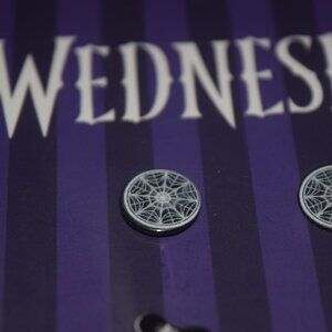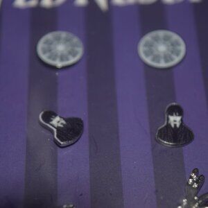 Set Includes: 3 pairs of stud earrings (Spider Webs, Wednesday, Thing).