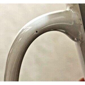 There is a small pottery bubble on the handle and a rough patch in the glaze on the inside bottom.