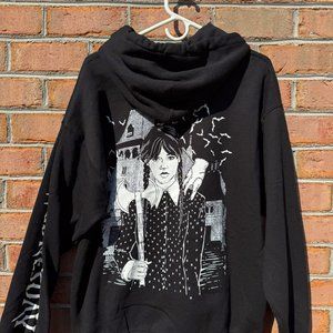 This hoodie is perfect for fans of the 'Wednesday' series, offering a stylish way to show off your love for the modern twist on the cl