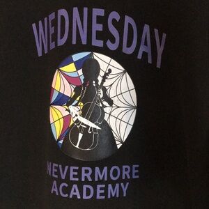 Wednesday Addams Nevermore Academy unisex black popover hooded sweatshirt Sz M