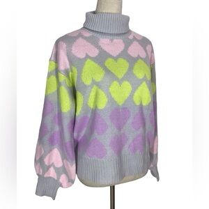 Wednesday Girl High Neck Sweater In Pastel Heart Knit NWT
