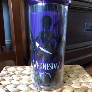 Wednesday “Solitude Suits Me” double walled tumbler with straw and lid.