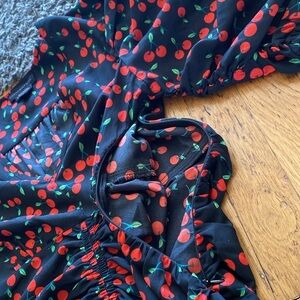Wednesday's Girl mini tea ruched dress in cherry print Size XS