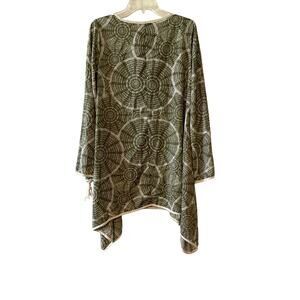 Wednesdays Give Back Boho Green Cream Tunic Mini Dress Womens Medium Bell Sleeve
