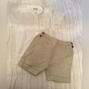 Trousers great for baby boys and girls, up to 4 years. DAY TO CELEBRATE ceremony trousers made in lightweight linen and cotton blend, has adjustable waist for added comfort.
