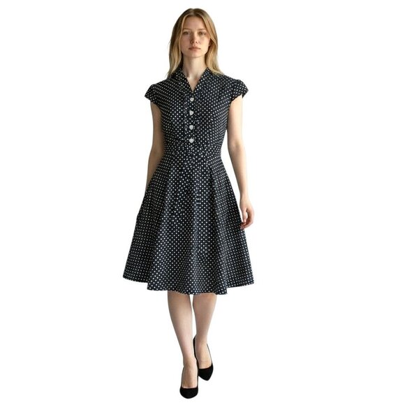 Wedtrend 1950s Style Retro Dress Womens Small Black White Polka Dot Tradwife