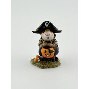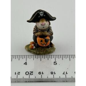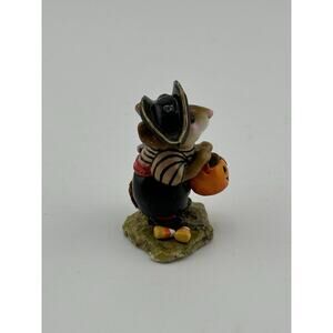 The Wee Forest Folk "Little Pirate Kidd" figurine is a collectible piece featuring a mouse in a pirate costume holding his pumpkin full of Halloween treats.. It was handmade from clay and hand painted in MA, by the artist Annette Petersen. This mouse was produced in 1996 and is retired. It is model number M-216. Perfect for collectors of Wee Forest Folk and Halloween collectors. It measures 1.5" tall, 1" long and 1.5" wide. It is in very good, vintage condition with it's original sticker. Please examine all the photos. There looks like a small chip on the base. It is hard to tell. This is an estate piece, so some wear is expected. Please see my store for many other Wee Forest Folk items.