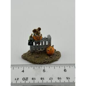 The Wee Forest Folk "Pickity Pumpkin " figurine is a collectible piece featuring a mouse sitting on a fence in a pumpkin costume. It is numbered M-232. It was handmade from clay and hand painted in MA, by the artist Donna Petersen. This mouse was produced in 1998 and was retired in 2004. Perfect for collectors of Wee Forest Folk and Halloween collectors. It measures 1.5" tall, 2" long and 1.5" wide. It is in excellent, vintage condition with it's original sticker. Please examine all the photos. This is an estate piece, please see my store for many other Wee Forest Folk items.