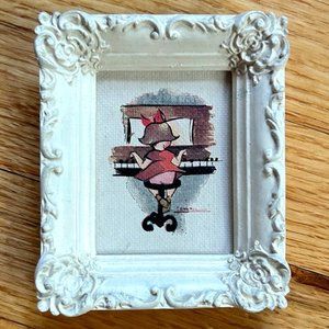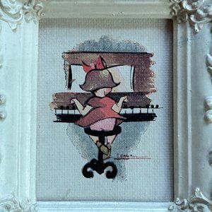 Wee Musician Miniature Print, Girl Playing Piano - Vintage 1960's