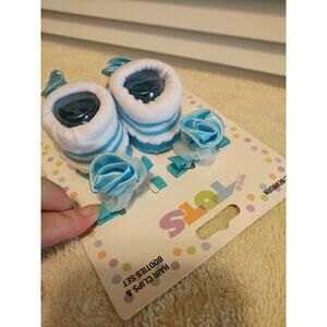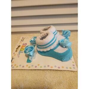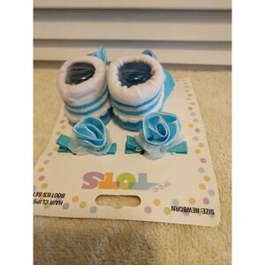 Wee Tots Newborn Blue and White Hair Clips And Booties Socks Pair Set NWT