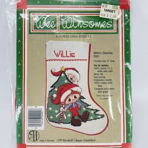 Wee Winsomes Willie's Stocking Santa Tree Cross Stitch Stocking Kit New 9"