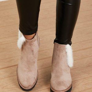 Get ready for colder weather with this faux fur-trimmed Chelsea boots! Their elastic side makes for an easy on/off design, and the short length hits right above the ankles.