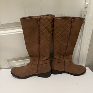 Weeboo Brown Faux Leather Tall Riding Boots Side Zip Womens Size 7 Boho Western