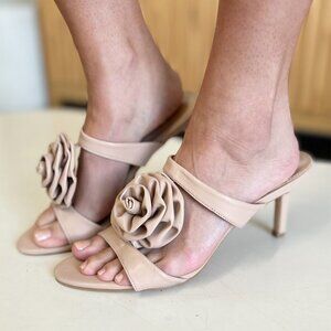 Weeboo Flower PU Leather Stiletto Heel Sandals