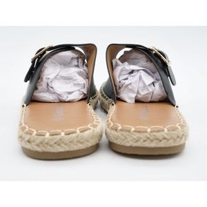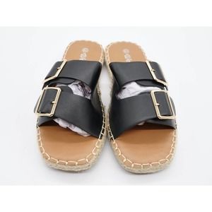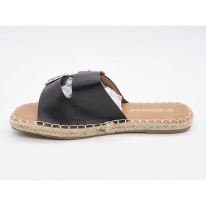Weeboo Sandals Womens 6.5 Black Faux Leather Flat Espadrille Slides Adjustable