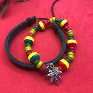 Weed and Rasta beads come together. Beaded Bracelet comes with a leather bracelet. .