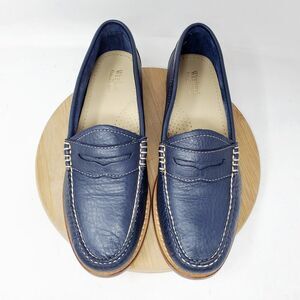 Weejuns Bass Loafer Shoes Womens 7.5 WIDE Blue Leather Slip On Moc Toe Penny