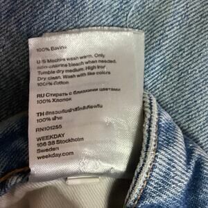 Weekday Blue Meg High Rise Straight Tapered Leg Medium Wash Ankle Casual Travel Denim Mom Jeans 32
