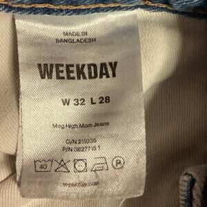 Weekday Blue Meg High Rise Straight Tapered Leg Medium Wash Mom Denim Jeans 32