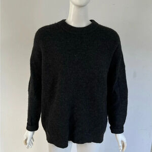 Weekday Dark Gray Ribbed Oversized Slit On Back Women Pullover Sweater Sz XS