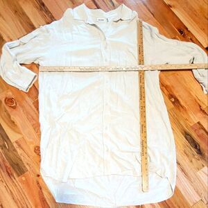 Weekday Linen Shirt Dress Oatmeal Button Down Boho Midi