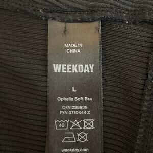Weekday Ophelia Black Soft Ribbed Knit Spaghetti Strap stretchy jersey Scoop Neck Bra Size L