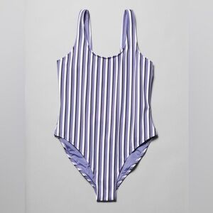 Weekday Purple White Emerald Vertical Stripe One Piece Swimsuit Size Large