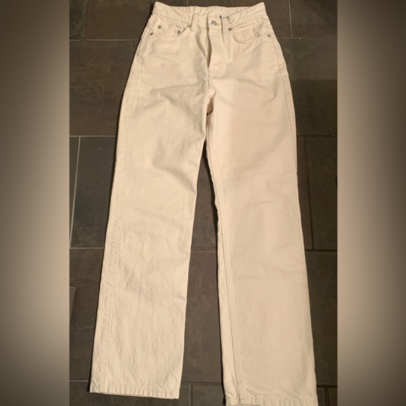 Cream Weekday Rowe Extra High Straight Jeans in Cream. Waist: 13 in Inseam: 29.5 in Rise: 12 in