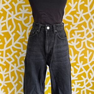 Weekday Rowe Straight Leg High-Rise Black Denim Jeans Cotton - 27/32 (Small)