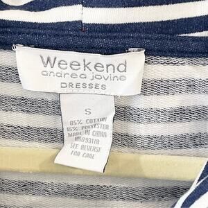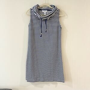 Weekend Andrea Jovin Navy and White Striped Sleeveless Dress Drawstring Neck S