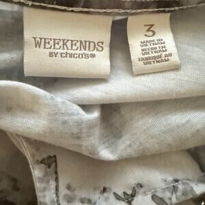 Elevate your weekend style with this chic Hi-Low Chico's blouse! Featuring a flattering quarter-sleeve design and a subtle gray tone, it's perfect for adding a touch of sophistication to any outfit. The stylish bling detailing adds a hint of sparkle, making it ideal for both casual and dressier occasions. In plus size 3, it offers a comfortable and flattering fit. Don't miss out on this versatile and fashionable addition to your wardrobe!