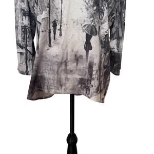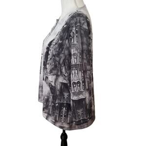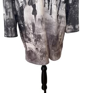 Weekend By Chicos Gray Tone Paris Quarter Sleeve Bling Hi Low Blouse Plus Size 3