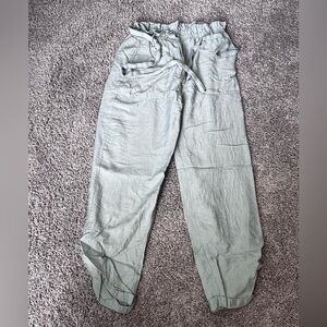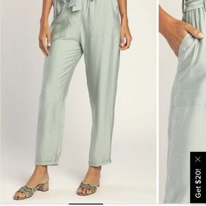 Weekend Date Dusty Sage Cropped Paperbag Waist Pants