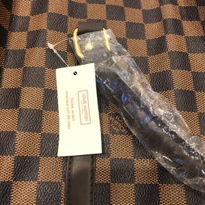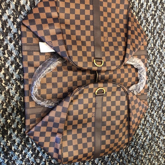 This is a great quality replica LV weekend duffle bag with plastic and tags attached. Has strap and dust bag.